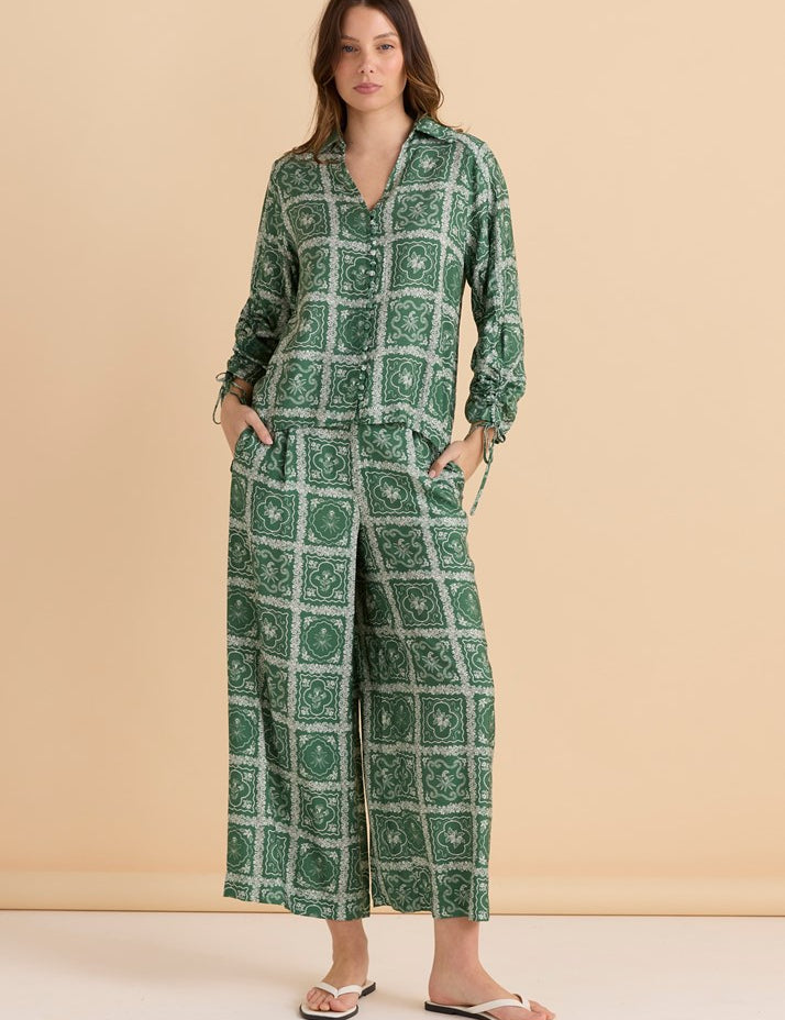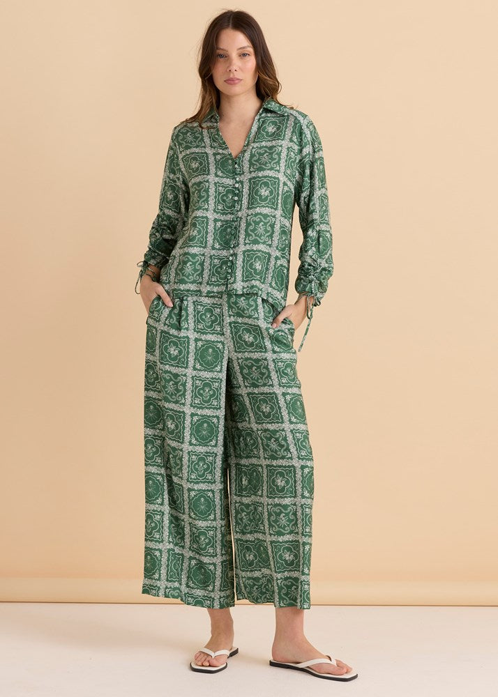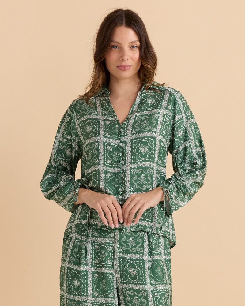 Grazia Blouse - Olive Geometric Print