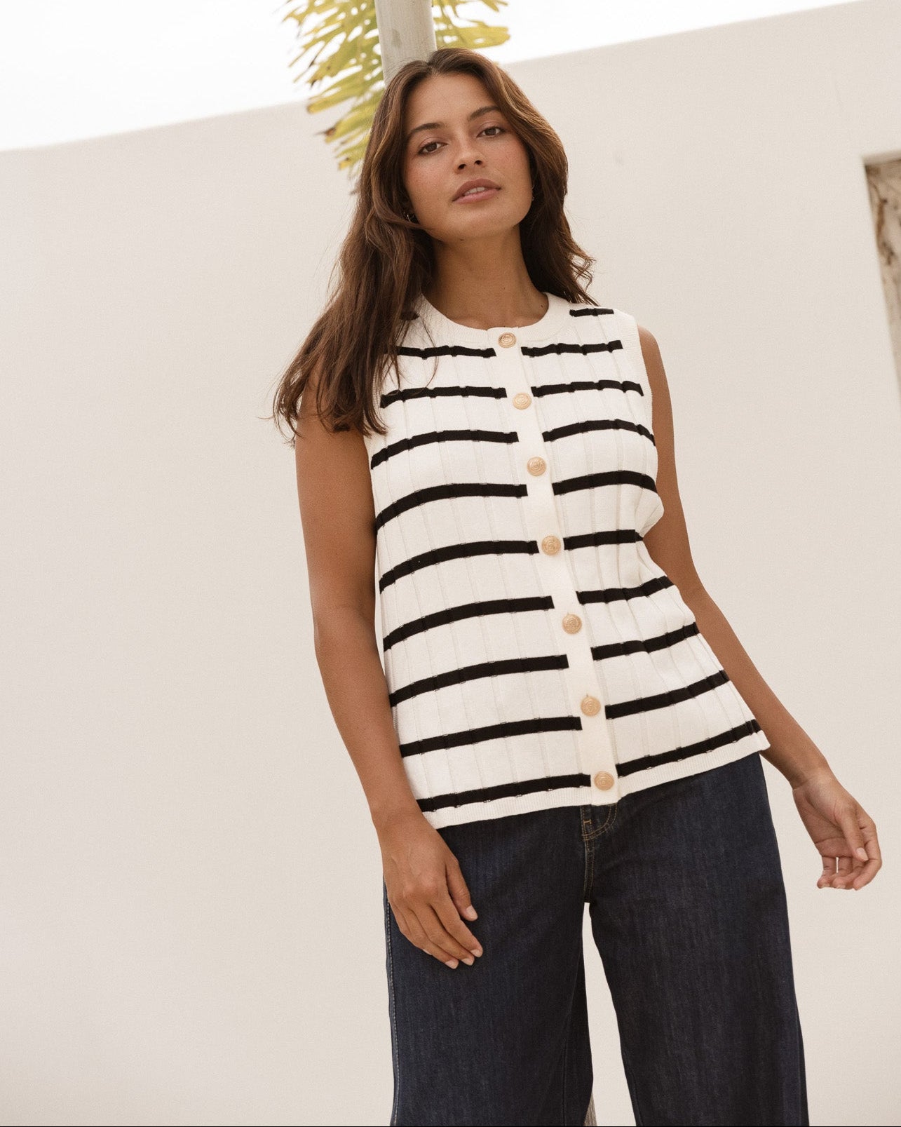 Nicollete Knit Vest - Black Stripe
