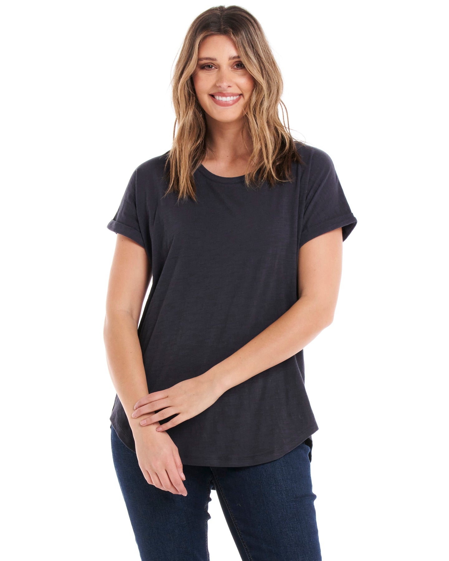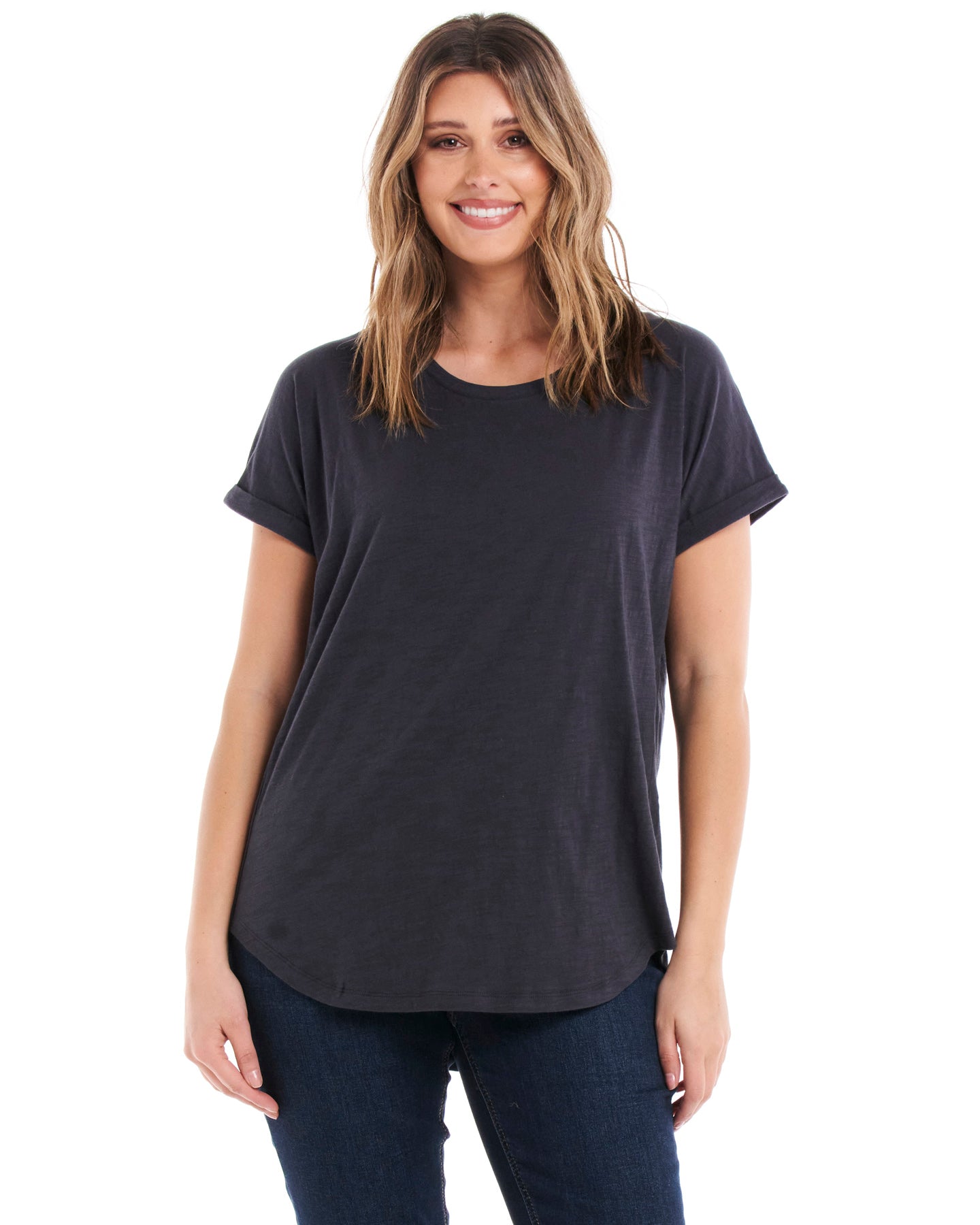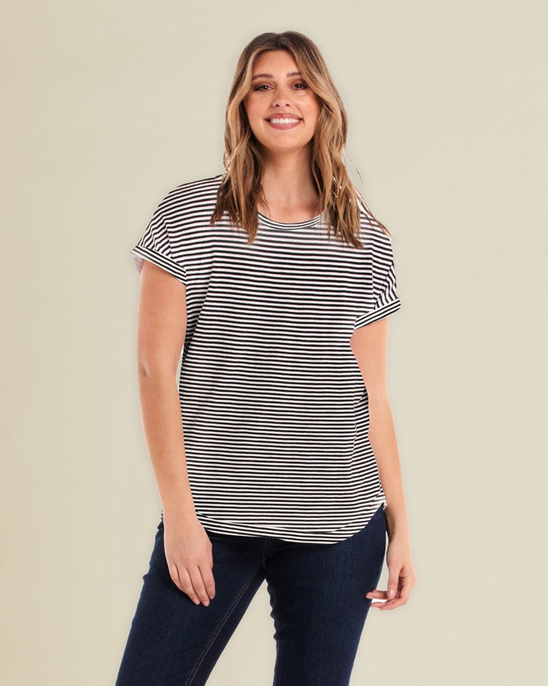 Hailey Short Sleeve Tee - White/Ebony Stripe