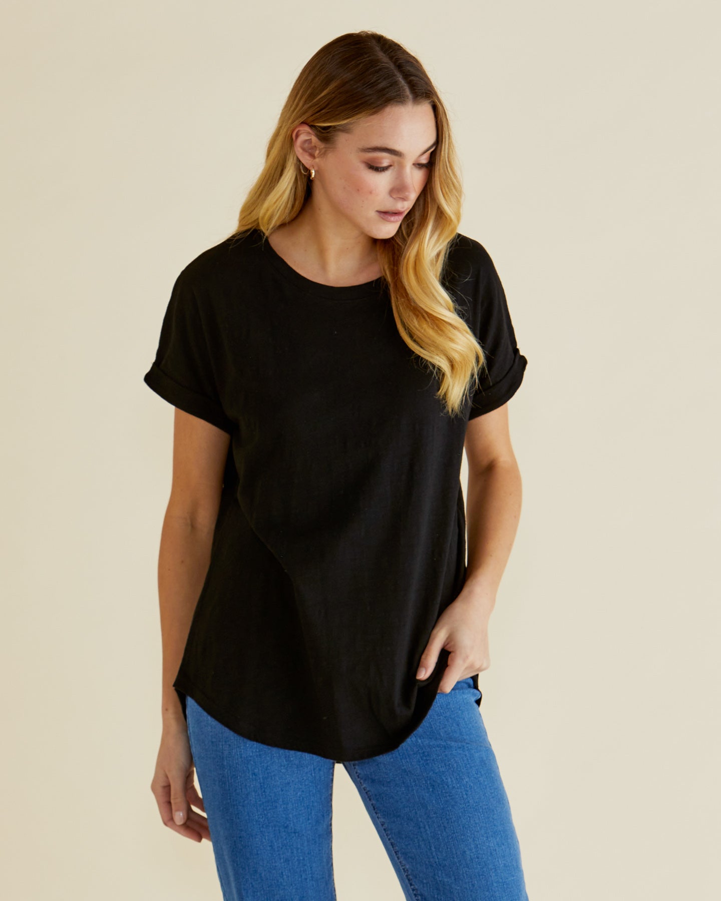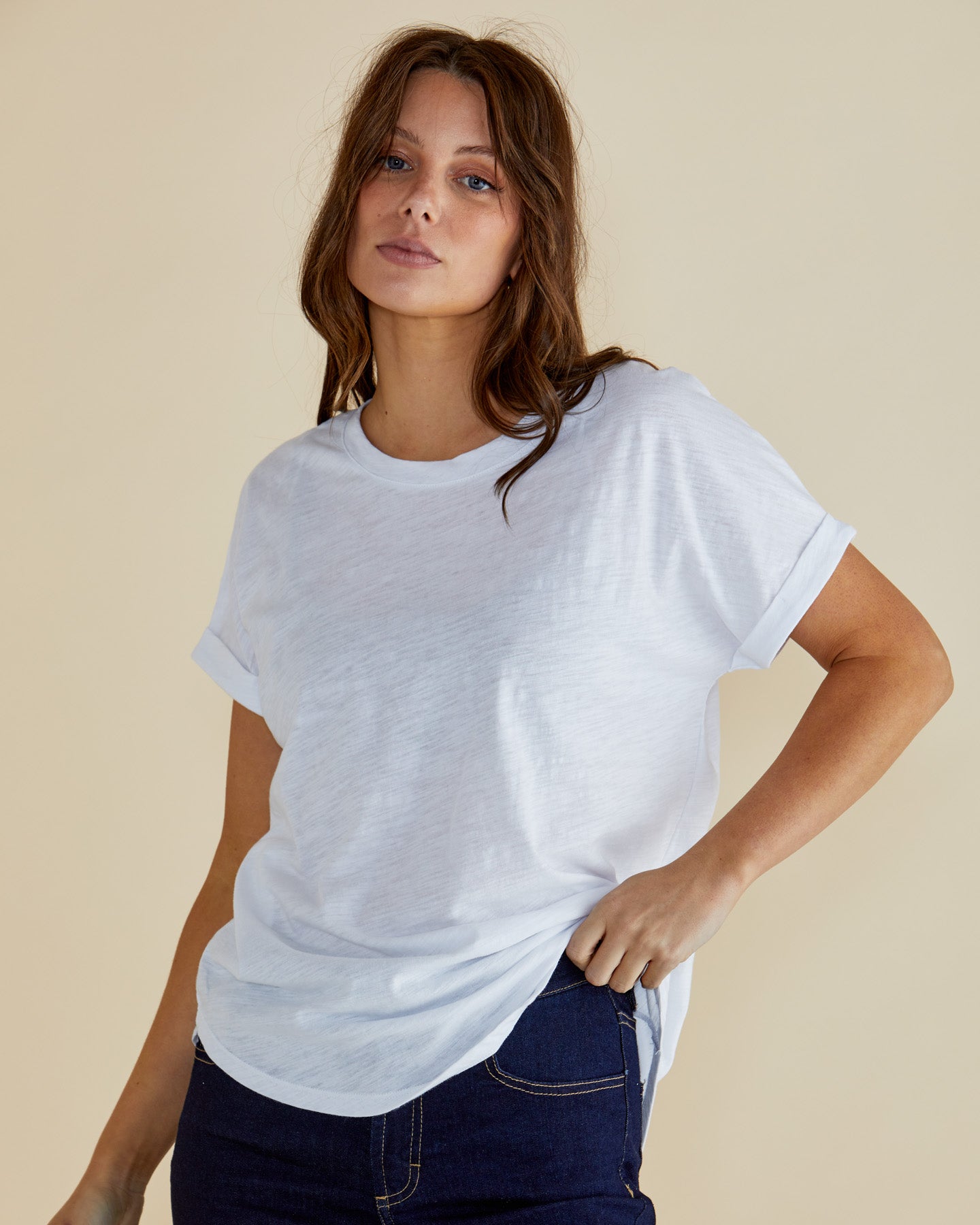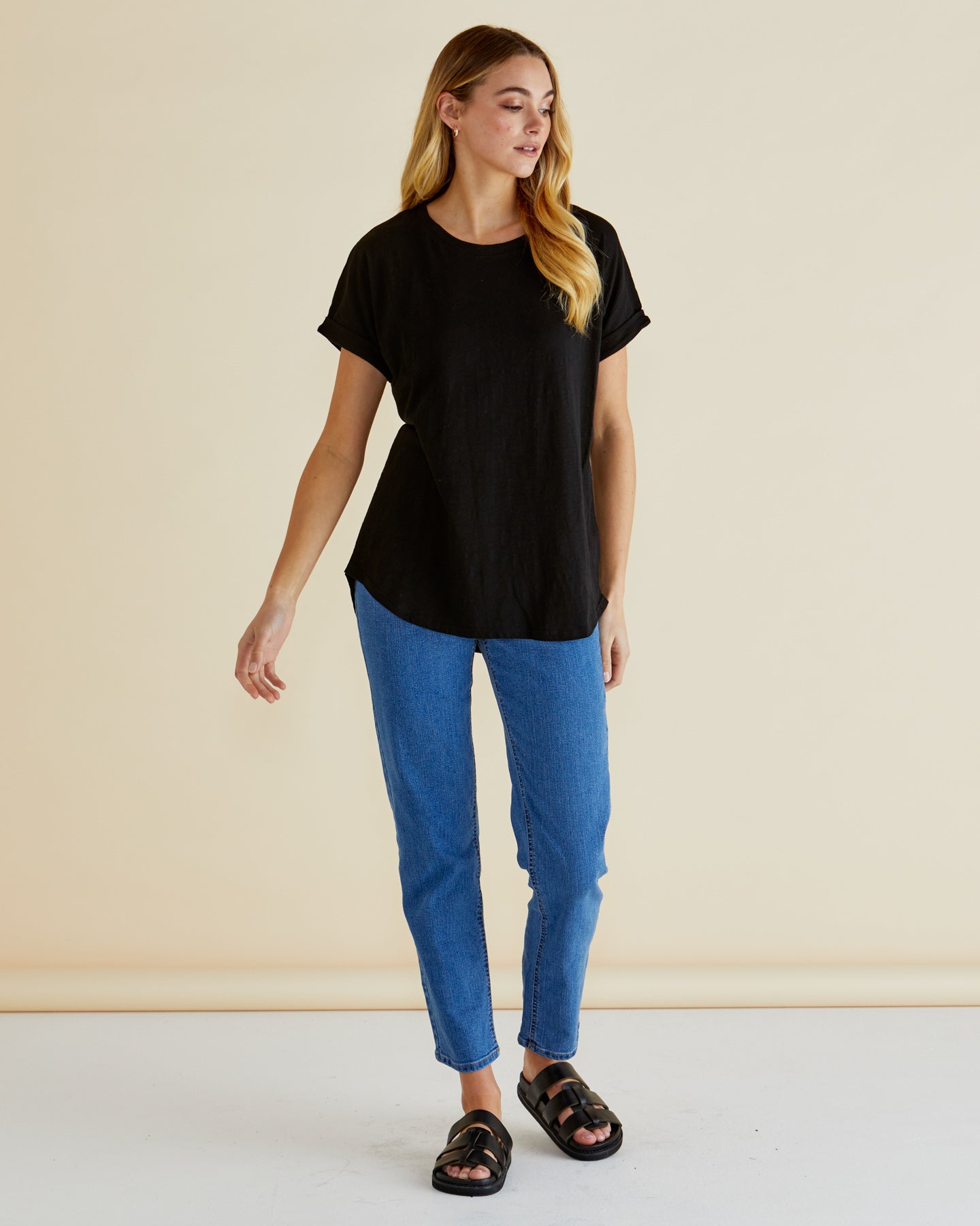 Hailey Short Sleeve Tee - White/Ebony Stripe