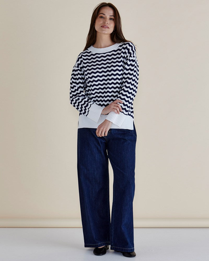 Ember Knit Jumper - Navy Wave Stripe