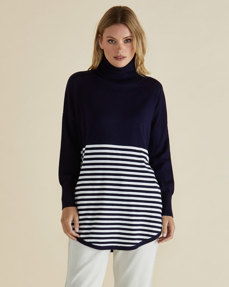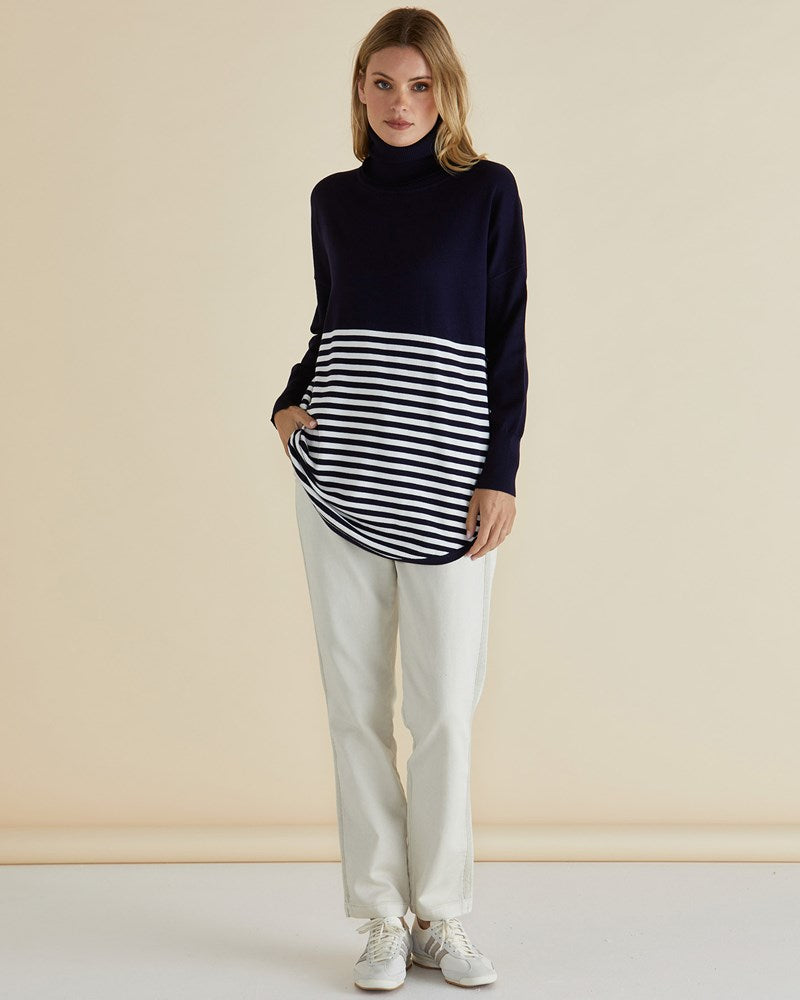 Fleur Roll Neck Jumper - Navy Stripe Splice