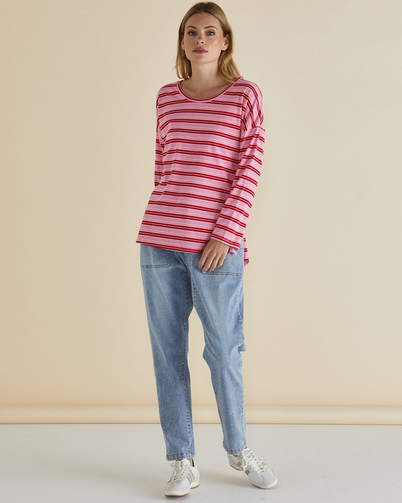 Taylor Tee - Pink/Red Stripe