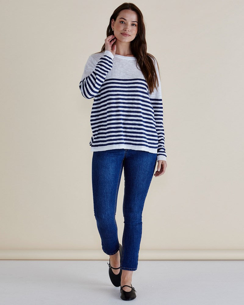 Natasha Knit Top - White/Navy Stripe