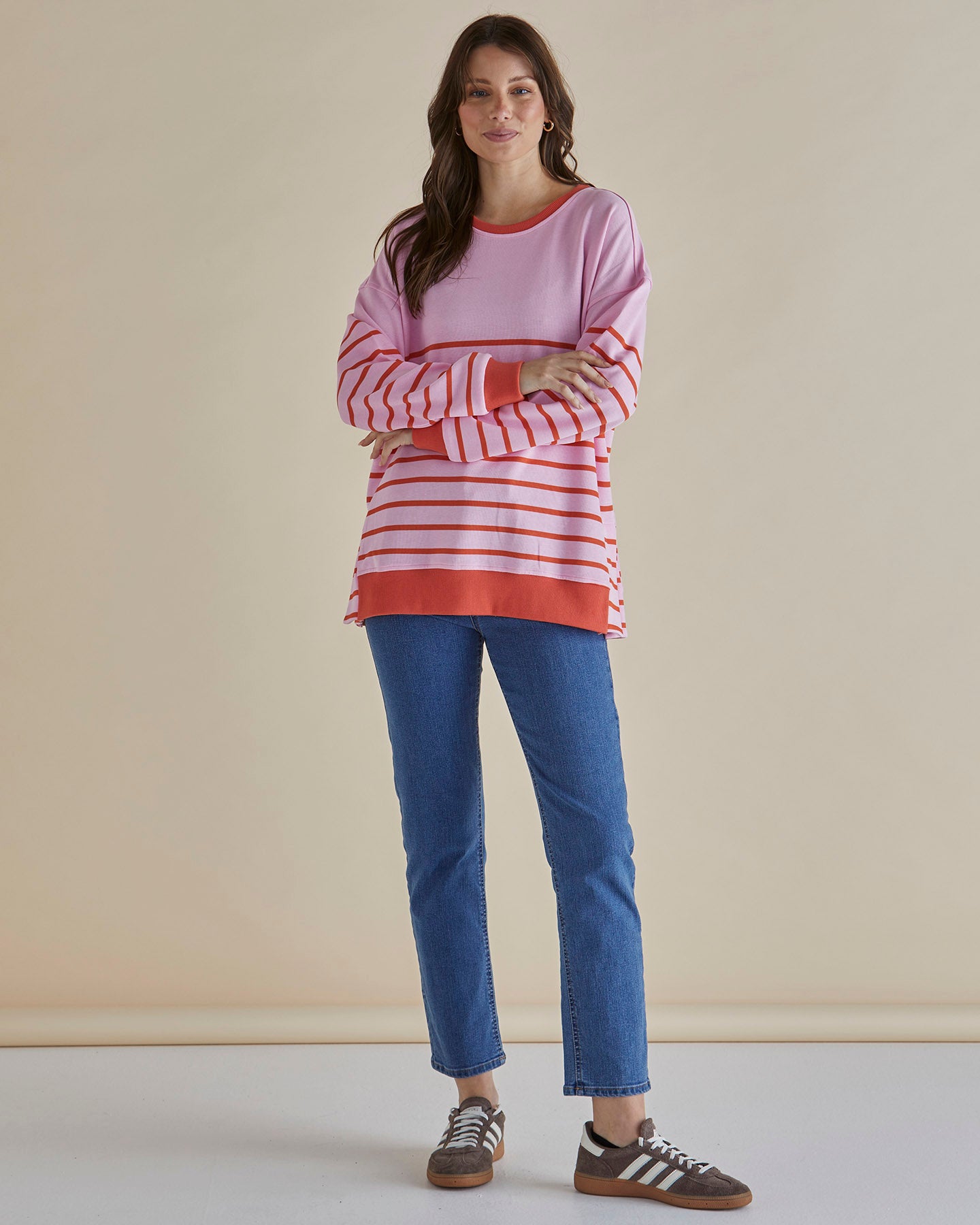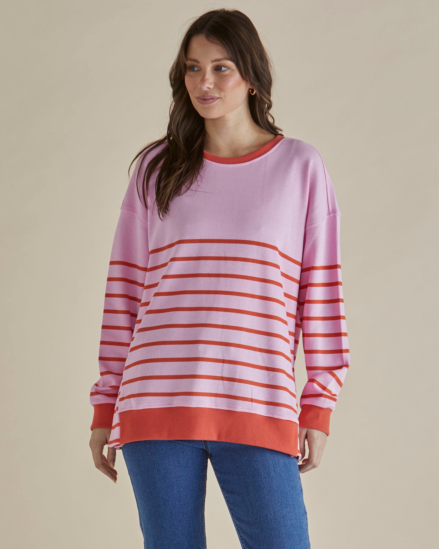 Easy Crew Sweat - Pink/Orange Stripe