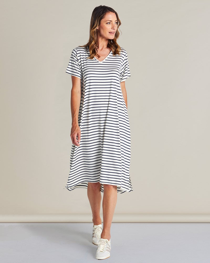 Maui T-Shirt Dress - Navy Blue/White Stripe