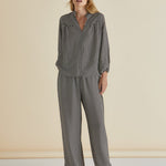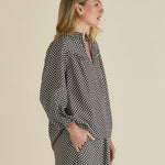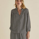 The Apollo Blouse is a relaxed fit top made from soft crinkle fabric. Featuring a v-neck opening, front and back yoke panels, and elastic cuffs, this blouse offers a chic, effortless look. Whether paired with pants or skirts, the relaxed fit ensures you stay comfortable while looking polished.