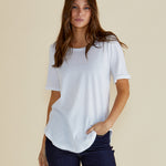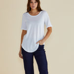 The Ariana Tee is a classic tee shape that suits everybody. An everyday essential style featuring an elongated sleeve length, curved hemline and a flattering round neckline - you'll be wearing this tee over and over again!