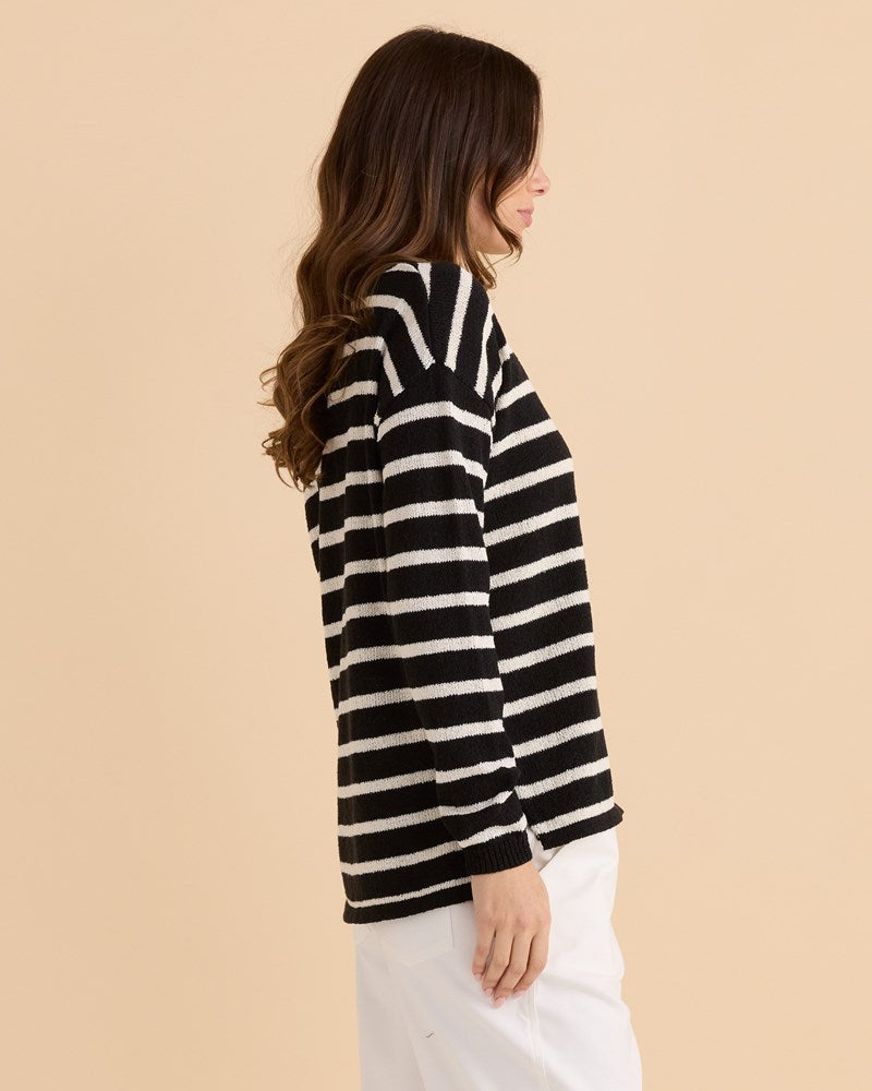 A soft, breathable knit that feels comfortable and refined for daily wear. The long sleeves and classic crew neckline create a timeless essential. Designed with an elevated stripe pattern for easy styling. A relaxed silhouette for a confident, effortless look.