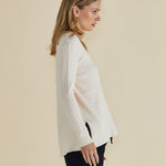 With its soft stretch knit texture and relaxed fit, the Cable Mini Jumper is designed for comfort and effortless style. The high scoop neck and drop shoulder sleeves create a laid-back look, while the high-low hem with side splits adds a contemporary touch. Perfect for layering over your favourite jeans or leggings, this jumper keeps you cozy and chic all day long.