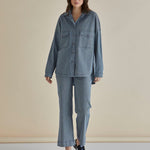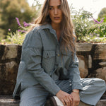 The Cherry Denim Shirt is the perfect blend of classic and modern. With its button-up front, chest pockets, and curved hem, it’s a versatile piece for layering or wearing solo. The relaxed fit ensures comfort, making it a must-have for effortless, everyday chic.