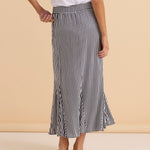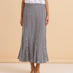 With a relaxed fit and midi length, the Darla Skirt offers a refined crinkle texture and godet detailing at the hem. This classic, polished skirt is perfect for adding effortless elegance to your transeasonal wardrobe.