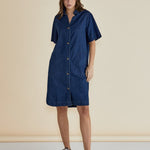 Effortless and current, the Dawson Denim Dress features a classic button-up front with a relaxed fit, perfect for easy everyday wear. Side patch pockets and a curved hem add practicality and style, while the timeless collar detail elevates this versatile wardrobe staple.
