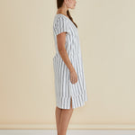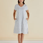 The Elwood Dress blends breathable viscose/linen fabric with a relaxed, oversized fit for ultimate comfort. Its V-neckline and side splits add a refined, elevated edge to this classic silhouette. Pockets enhance its practicality, making it an easy, transeasonal dress that effortlessly transitions through the seasons.