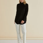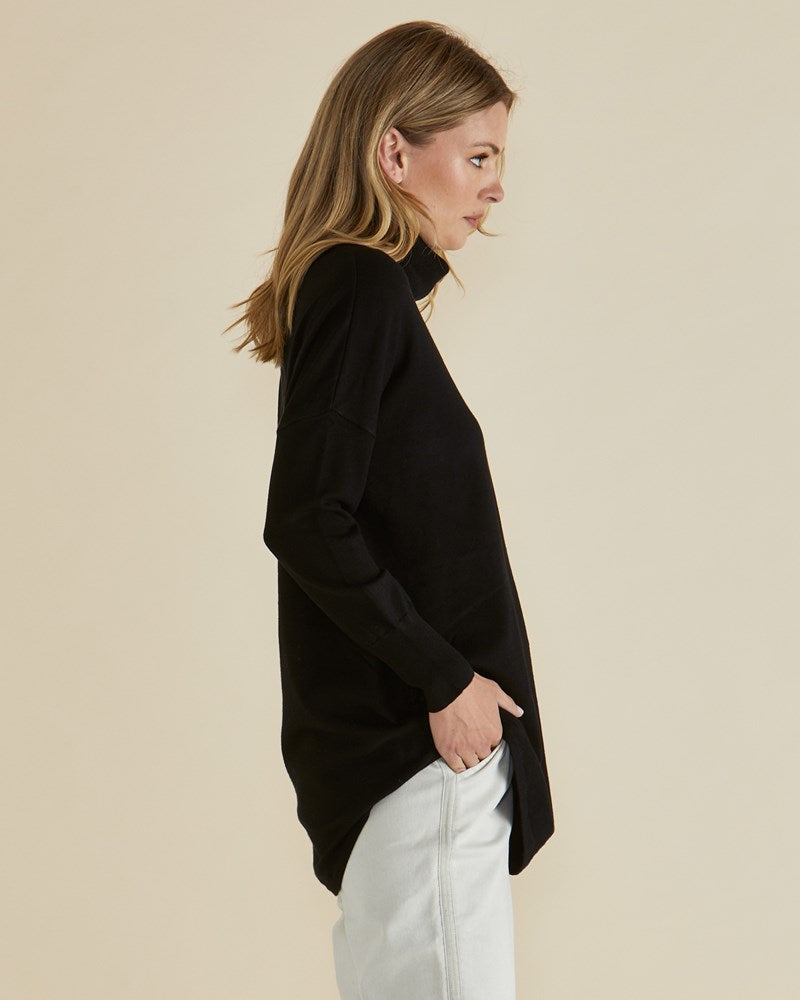 The Fleur Roll Neck Jumper is the ultimate cozy knit for chilly days. Made from soft stretch knit fabric, it features a roll neck, drop shoulder sleeves, and a curved front and back hem for a flattering, relaxed fit. The ribbed detailing adds texture, making it a perfect piece for pairing with jeans or leggings. This jumper keeps you warm, stylish, and comfortable, no matter the occasion.