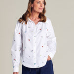 Featuring delicate floral embroidery and a refined silhouette, this shirt pairs classic design with a relaxed fit and button-up front for a sophisticated, elegant transeasonal layer.