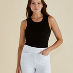 The Francis Rib Tank combines fitted comfort with a soft ribbed cotton jersey blend. Its sleeveless design and scoop neckline make it a classic, elevated essential. Perfect for layering or wearing alone, this tank offers effortless ease and style across transeasonal wardrobes.