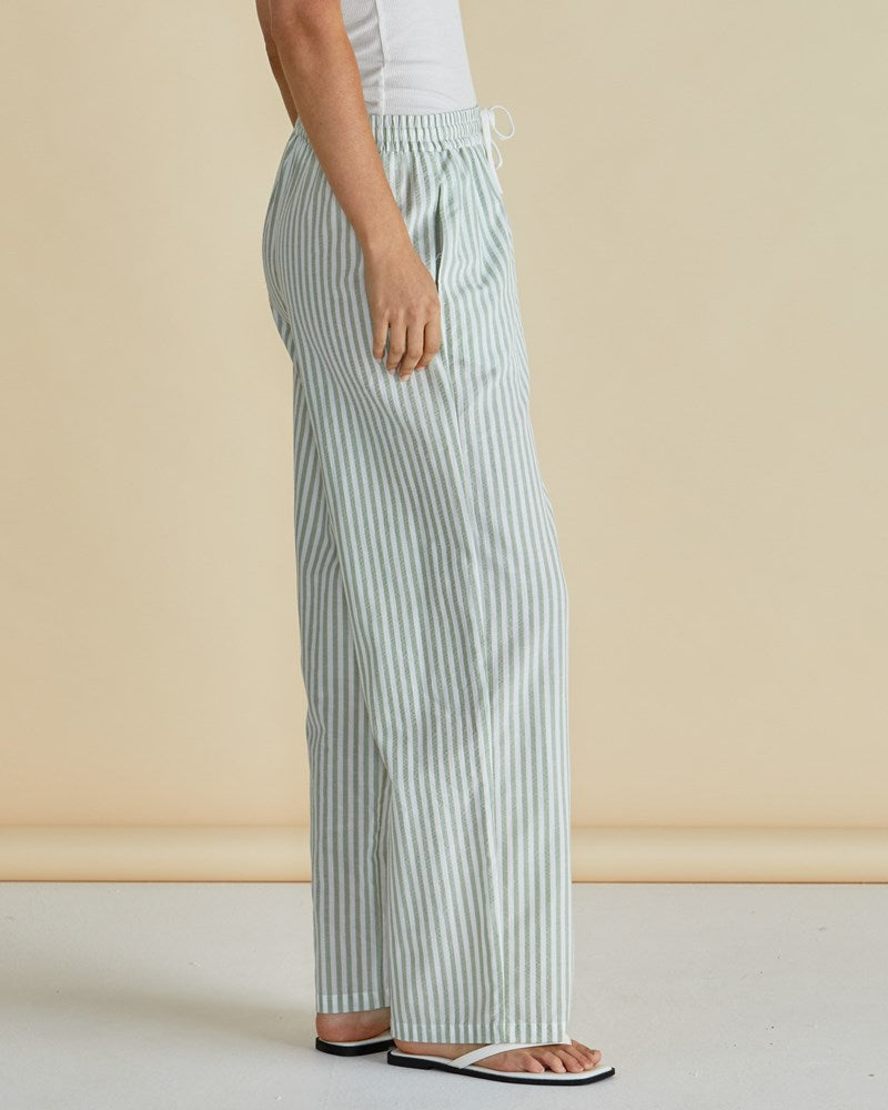 The Georgie Pants bring a refined edge to relaxed dressing. Featuring an elasticated waistband, waist tie and pockets, they offer all-day comfort with an elevated silhouette. The relaxed leg and mid-high rise fit make them ideal for effortless transeasonal styling. A timeless piece that pairs with everything.