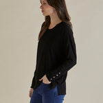 A modern twist on a wardrobe staple, the Hendrix Ribbed Long Sleeve Tee is made from a soft stretch ribbed texture for both comfort and style. The elevated snap button sleeves give it an on-trend, current feel, while the relaxed fit and side splits create an effortless silhouette that’s perfect for layering or wearing solo.