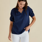 The Joanne Blouse exudes elevated ease with its breathable viscose blend and open V-neckline. Balloon sleeves with elasticated cuffs add a classic yet modern detail. Its relaxed fit and straight hemline make it a comfortable, transeasonal essential. Perfect for layering or wearing alone, it offers effortless sophistication.