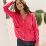 A timeless layering piece, the Leon Knit Cardigan features a V-neck button front, ribbed cuffs, and pockets in a relaxed fit. Crafted for comfort and elevated style, this refined cardigan effortlessly complements any transeasonal wardrobe.