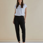 The Lindsay Jogger is an essential everyday pant made from breathable 100% Cotton. Featuring a figure flattering flat front waistband and slimming straight leg with cuff.