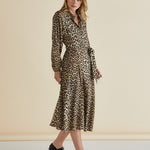 The Lisa Leopard Shirt Dress combines comfort and bold style with its soft fabric and relaxed fit. Featuring a classic collar, button-up front, and an elasticated waist with a self-fabric belt, this dress offers a flattering, laid-back look. Whether styled with sandals or boots, the Lisa Leopard Shirt Dress brings a touch of fun to any casual day.