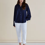 The Lizza Embellished Shirt offers an elevated take on the classic shirt with raglan sleeves, a collar, and button front. Light sleeve cuffs and relaxed fit ensure polished comfort throughout the seasons.