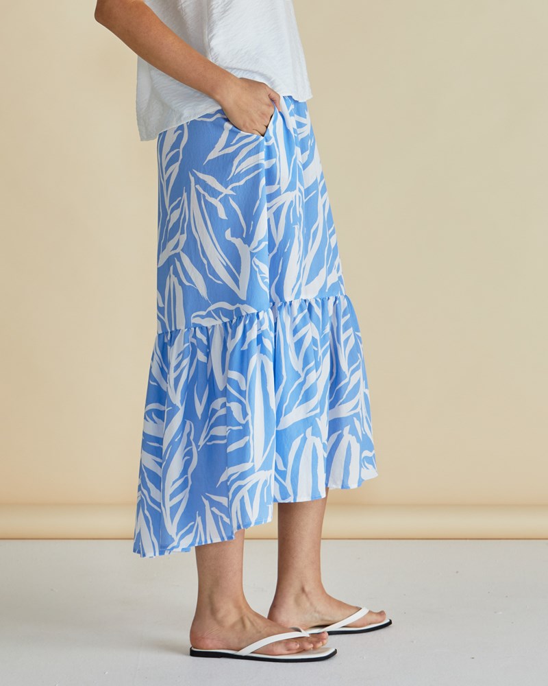 The Maggie Skirt is an effortless blend of comfort and style. Designed with an elasticated waistband, tiered hem and pockets, it offers a relaxed, feminine silhouette. The high-low hemline adds movement and shape, making it easy to wear across seasons. A classic, elevated piece that transitions seamlessly from day to night.