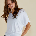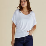 This oversized tee is super comfortable and effortlessly stylish, perfect for pairing with denim. Available in three versatile colorways, its loose fit flatters every body. The scoop neck and batwing sleeves add a touch of relaxed elegance, while the straight hemline ensures a polished finish. Elevate your casual wardrobe with this must-have tee for ultimate comfort and chic style.