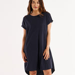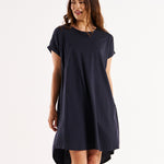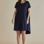 Introducing the Maxine T-Shirt Dress: Your perfect blend of comfort and style for any occasion. With a chic scoop neck, playful trapeze seam lines that flatter your shape, and a fun curved hem on both front and back, this dress is a fashion statement on its own. And guess what? It comes with side pockets to add that extra touch of convenience. Whether you're brunching with friends or strolling through town, the Maxine Dress has you covered, effortlessly combining fashion and functionality.