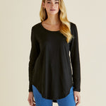 The Megan Long Sleeve Tee from Betty Basics is an all time fan favourite! Loved for its relaxed fit and effortless style, this classic features a flattering scoop neck and long sleeves, perfect for any season. The curved hem at the front and back adds a playful touch, ensuring you stay stylish and comfortable. Ideal for layering or wearing on its own, the Megan Tee is a timeless and versatile wardrobe staple you’ll reach for again and again.