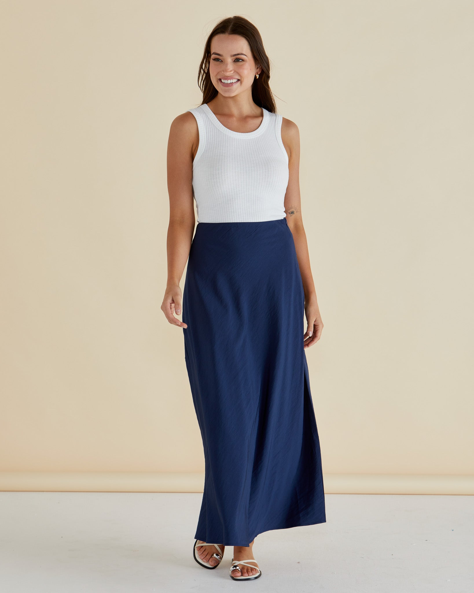 The Mindy Skirt is a classic transeasonal piece crafted from a soft viscose blend with a flattering bias cut. Its elasticated waistband ensures comfort and ease, while the midi length delivers an elevated, polished look. Relaxed in fit but refined in style, it’s an effortless addition to any wardrobe.