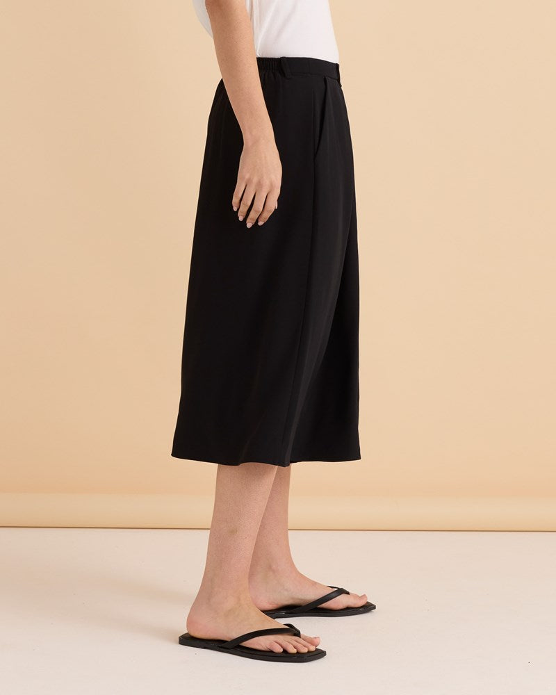 A wide-leg culotte with elevated drape and ease. The elastic waistband and front pleats ensure a comfortable, flattering fit. Side pockets add functional everyday style. A relaxed staple for polished and effortless outfits.