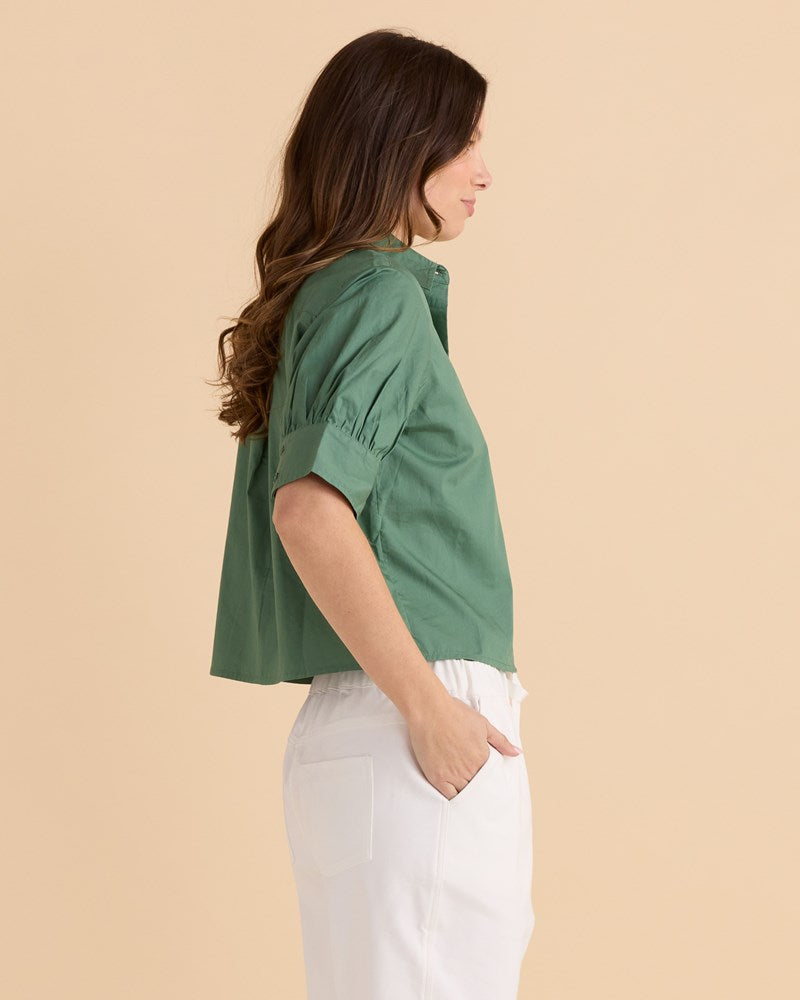 A crisp cotton-blend shirt designed for relaxed sophistication. Cuffed short sleeves and a hidden placket keep the look polished. Comfortable for all-day wear and effortless styling. A classic essential with refined detail.