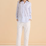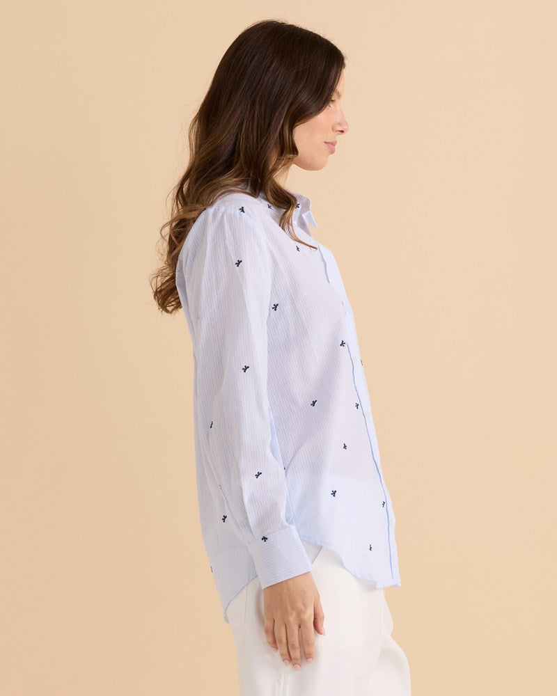 A crisp embroidered shirt designed with polished simplicity. The classic collar and curved hem keep it timeless. Comfortable for everyday transeasonal styling. An effortless piece for an elevated wardrobe.