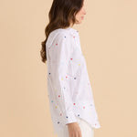 A crisp embroidered shirt designed with polished simplicity. The classic collar and curved hem keep it timeless. Comfortable for everyday transeasonal styling. An effortless piece for an elevated wardrobe.