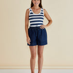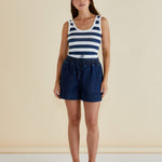 Designed for comfort and ease, the Relax Denim Shorts feature an elasticated waistband with drawstring for a perfect fit. Crafted from a soft denim feel, they have practical patch pockets and a mid-high rise silhouette. An effortless, elevated choice for transeasonal casual days. Classic style meets relaxed comfort.