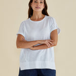 Crafted from cotton slub jersey, the Shirley Short Sleeve Tee features a high-low hem with side splits and raw edge detailing. Its relaxed fit and short sleeves create an easy, elevated look. A classic essential for comfortable transeasonal style.