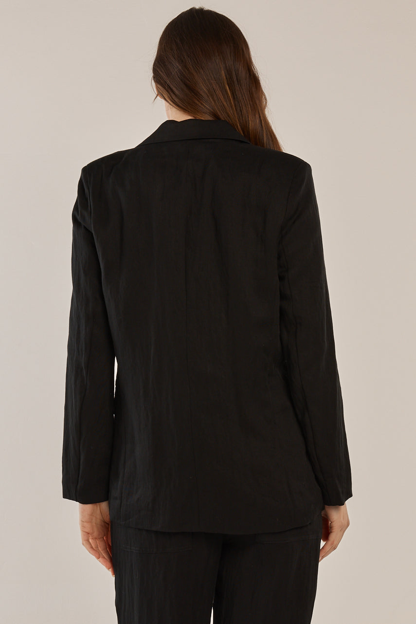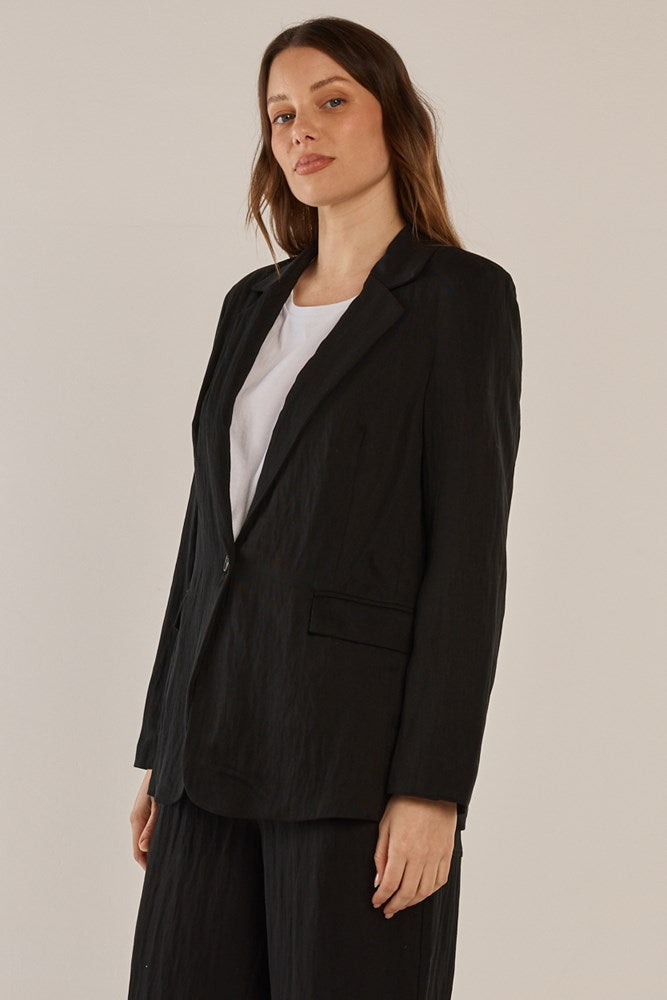 The Sutton Blazer offers an elevated approach to everyday layering. Crafted from a soft drapey fabrication, it features a relaxed fit with functional pockets. Easy to throw on for polished comfort. A transeasonal blazer designed for effortless styling.