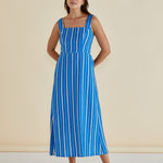 The Tegan Midi Dress offers a flattering fitted silhouette with a square neckline and shirred back panel for comfort. Crafted from a soft viscose blend, it features side splits and a midi length for elevated style. A classic, effortless dress designed for transeasonal elegance.