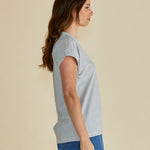 The Tracy V-Neck Tee is a timeless essential with an elevated edge. Crafted from soft cotton jersey, it features a flattering V-neckline, roll cuffs and side splits for added movement. Effortless and comfortable, it’s perfect for transeasonal layering. A true staple for easy, refined dressing.